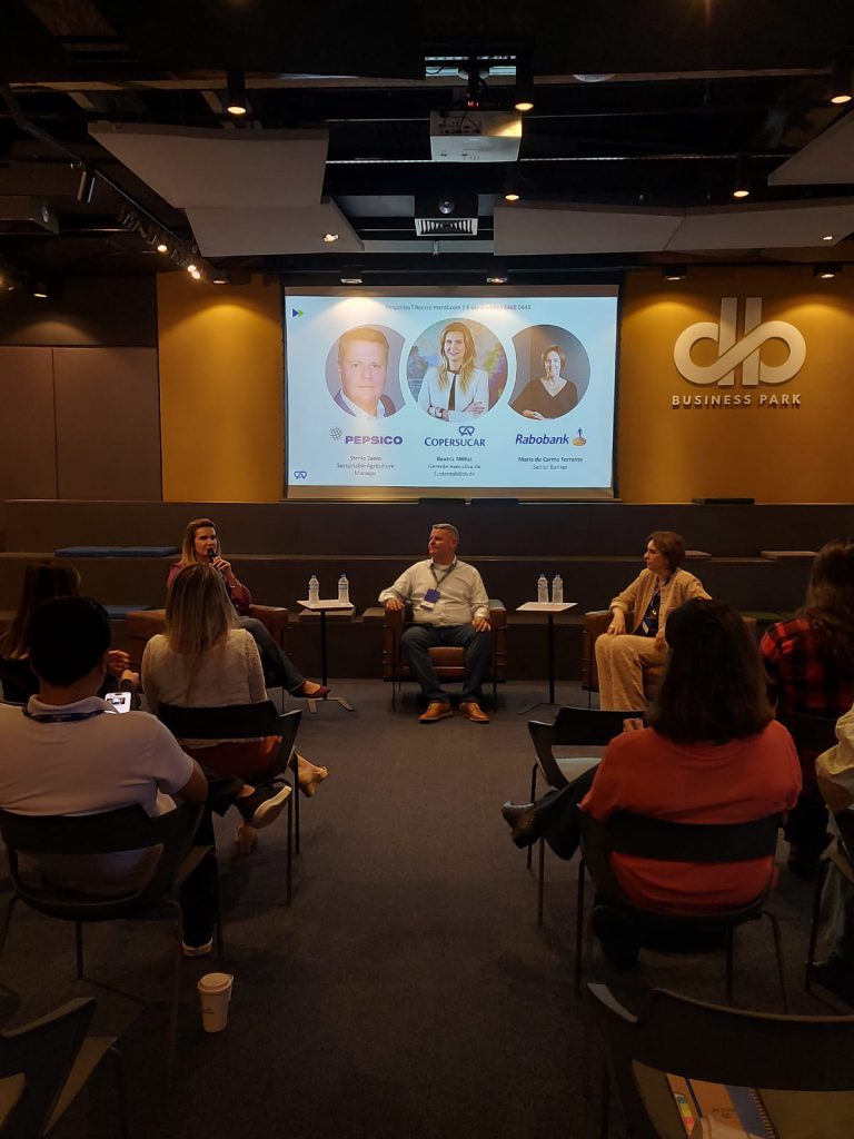 Iniciando a programação do dia, o painel ESG: Sua importância dentro das empresas, reuniu o gerente de Agricultura Sustentável da Pepsico, Stenio Zanin, e a sênior banker do Rabobank, Maria do Carmo Ferrante, para uma conversa mediada pela gerente-executiva de Sustentabilidade da Copersucar, Beatriz Milliet.